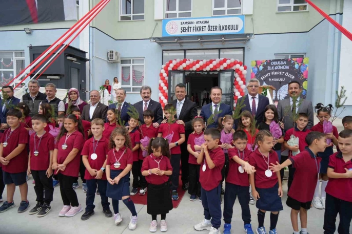 Samsun’da 2025-2026 eğitim-öğretim yılı, 'Yeşil Vatanı Korumak' temasıyla Atakum Şehit Fikret Özer İlkokulunda düzenlenen törenle başladı. Saygı duruşu ve İstiklal Marşı’nın okunmasının ardından halk oyunları gösterisi ve fidan dağıtımı gerçekleştirildi.