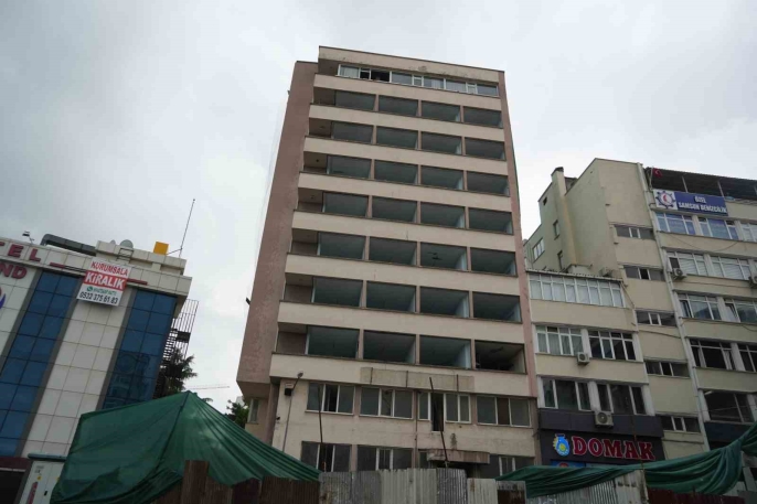 Samsun'un İlkadım ilçesinde, deprem riski taşıdığı belirlenen 8 katlı eski yurt binasının yıkım çalışmaları start aldı.