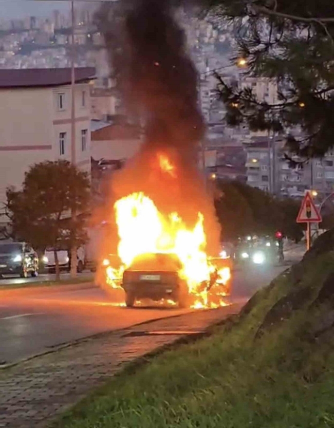 Samsun'da seyir halindeki otomobil alev topuna döndü