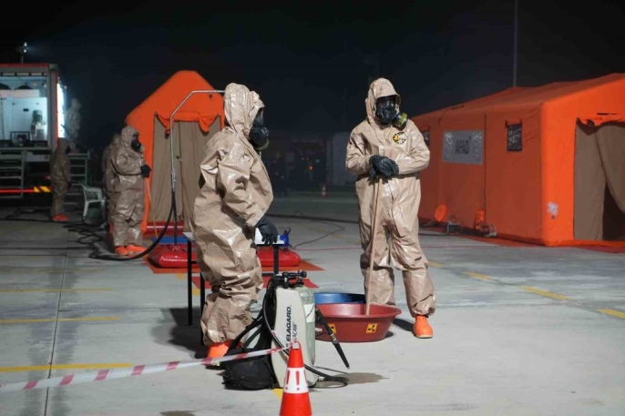 AFAD koordinasyonunda gerçekleştirilen tatbikata toplamda 7 farklı kurumdan 78 personel katıldı. Senaryo gereği hastanenin laboratuvar bölümünde meydana gelen bir patlama sonrası kimyasal sızıntı olduğu varsayıldı. Olay yerine sevk edilen ekipler, hızlı bir şekilde güvenlik çemberi oluşturarak müdahale çalışmalarına başladı.