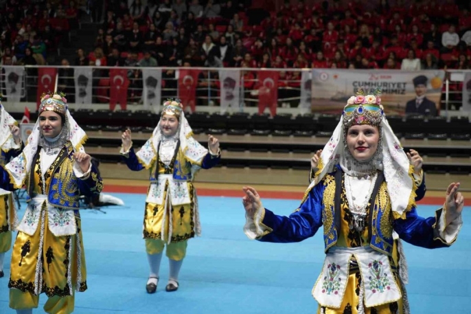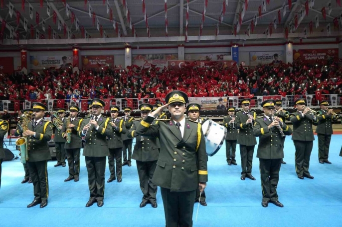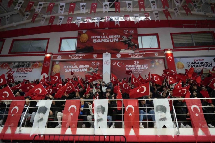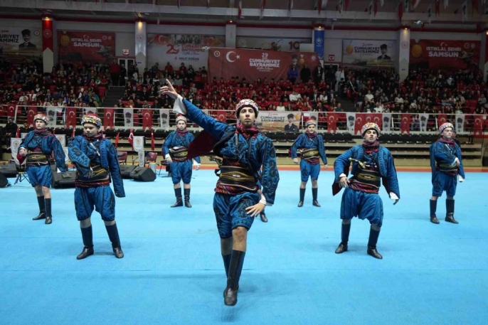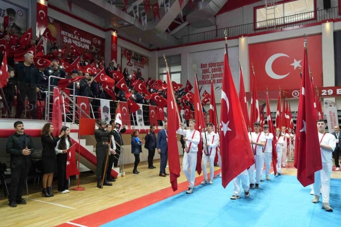 Samsunda 29 Ekim Cumhuriyet Bayramı, olumsuz hava şartlarına rağmen Mustafa Dağıstanlı Spor Salonunda coşkuyla kutlandı.