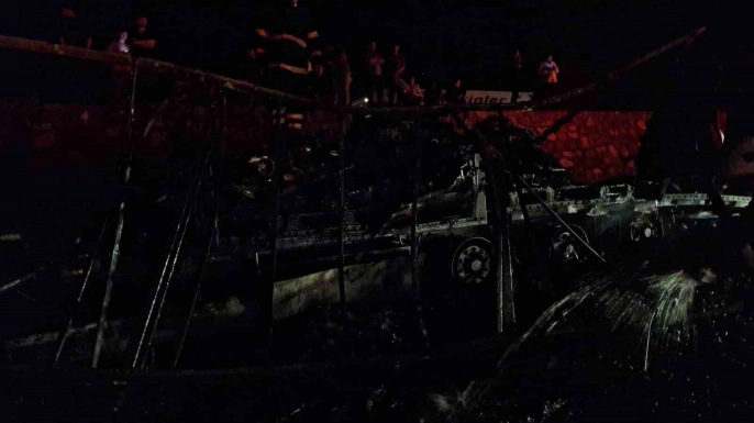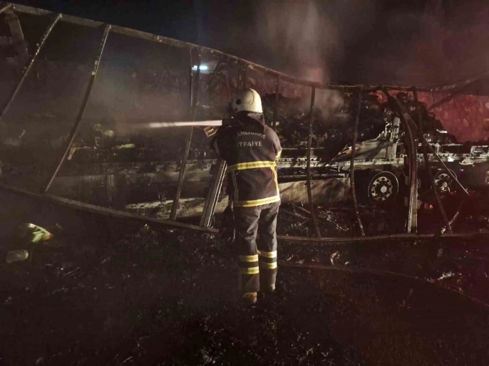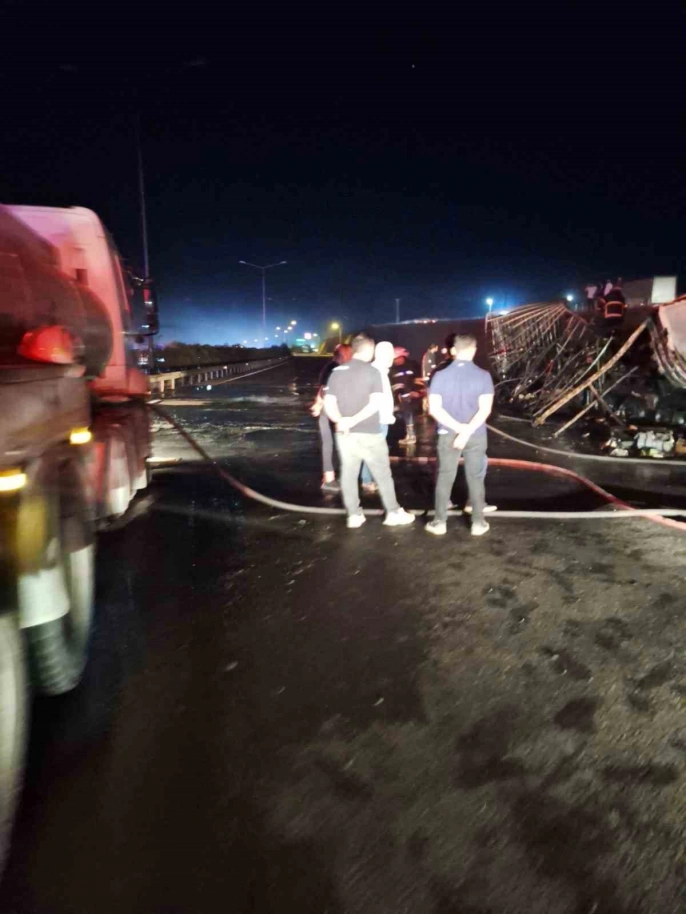 Sürücü, tırı yol kenarına çekmeyi başardı ancak araç kısa sürede tamamen yandı. İhbar üzerine olay yerine gelen itfaiye ekipleri, yangını kontrol altına aldı. Uluslararası taşımacılık yapan tır, yangın sonucu hurda yığınına döndü.