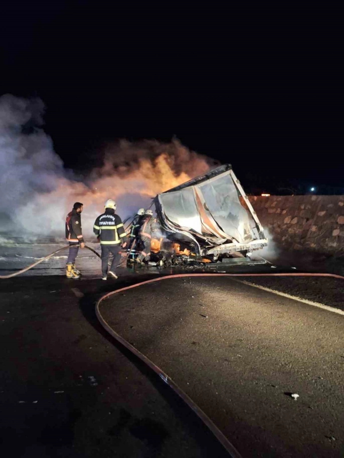 Şanlıurfa - Gaziantep Otoyolu'nun 70. kilometresinde seyir halindeki bir tırda yangın çıktı. Bünyamin Ö.'nün kullandığı 27 AGV 738 plakalı tır, henüz belirlenemeyen bir nedenle alev aldı.