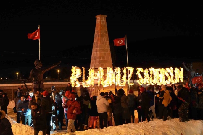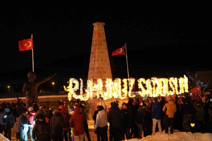 Ellerinde Türk bayrakları ve meşalelerle 3 kilometrelik yolu kat eden katılımcılar, Yukarı Sarıkamış Şehitliği'ne ulaştı. Burada hazırlanan ve üzerinde "Ruhunuz şad olsun" yazan devasa bir figür, meşalelerle aydınlatıldı. Ardından şehitler için dualar edildi ve vatan uğruna can veren kahramanlar rahmetle anıldı.