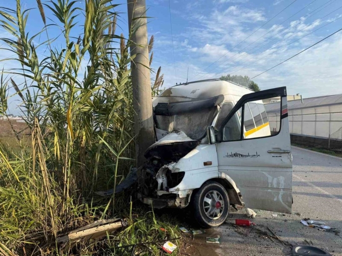 Serik'te minibüs elektrik direğine çarptı: 2 yolcu yaralandı