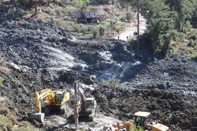 Seydikemer'de heyelan sonrası yol açma çalışmaları hız kesmeden devam ediyor