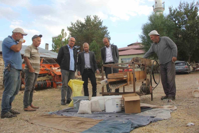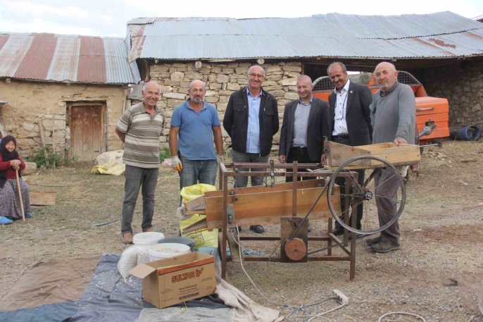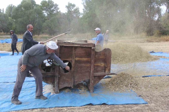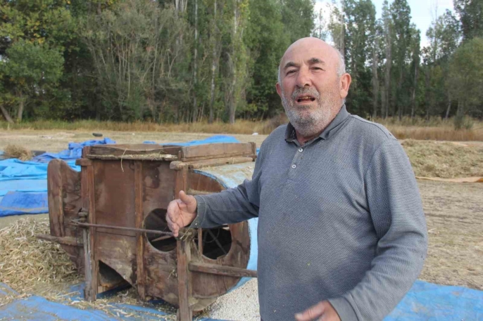 Geleneksel yöntemlerle yılda bir ton mahsul elde ettiklerini belirten Enes Dursun Yılmaz, "Fasulye savurmak için kullandığımız bu makine yaklaşık yüz yıllık. Atıl bir şekilde duruyordu. Yaklaşık 8 yıl önce bunu tamir ettik. Kuru fasulye çıkarma işlerinde savurma makinesi olarak kullanıyoruz. Dövülmüş fasulye otlarını denesinden ayırmak için kullanıyoruz. Şuan bu makinelerin yerlerine patos kullanılıyor. Ürün olarak savurma makinesi daha temiz çıkarıyor. Patosta kırma riski oluyor, fasulyeleri kırıyor. Bunda kırma sorunu yok, fakat savurma makinesinin bir zorluğu fasulyeyi iyice harman edip, dövüp, tanesi ayrıldıktan sonra ancak savrulabiliyor ama patosta öyle bir şey yok. Patosta direkt makineye atıyorsun tanesini ayıyor. Bunda önce dövme işleminden geçiriyoruz, ondan sonra bundan savuruyoruz, tanesini ayırıyoruz" dedi.