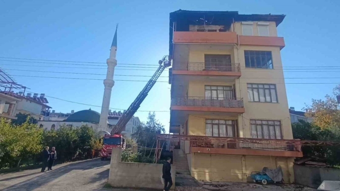 112 Acil Çağrı Merkezi'ne gelen yangın ihbarı üzerine Antalya Büyükşehir Belediyesi İtfaiyesi Manavgat birimi, 112 Sağlık ve Manavgat Emniyet Müdürlüğü ekipleri alarma geçti. İhbarın, cumartesi günü yangın çıkan bina için geldiği anlaşıldı. Ekipler, çatısından dumanlar yükselen binaya girdiğinde, yangından sonra sağlam kalan eşyalarıyla alt kattaki boş bir daireye taşınan anne ve 3 çocuğunu buldu ve onları dumandan etkilenmeden binadan çıkardı.