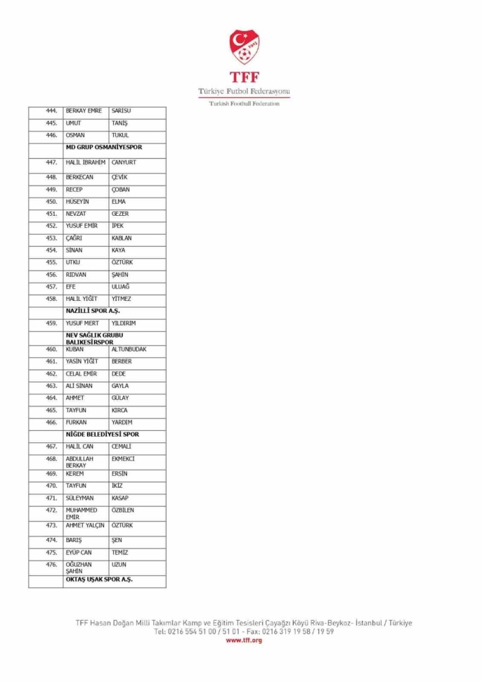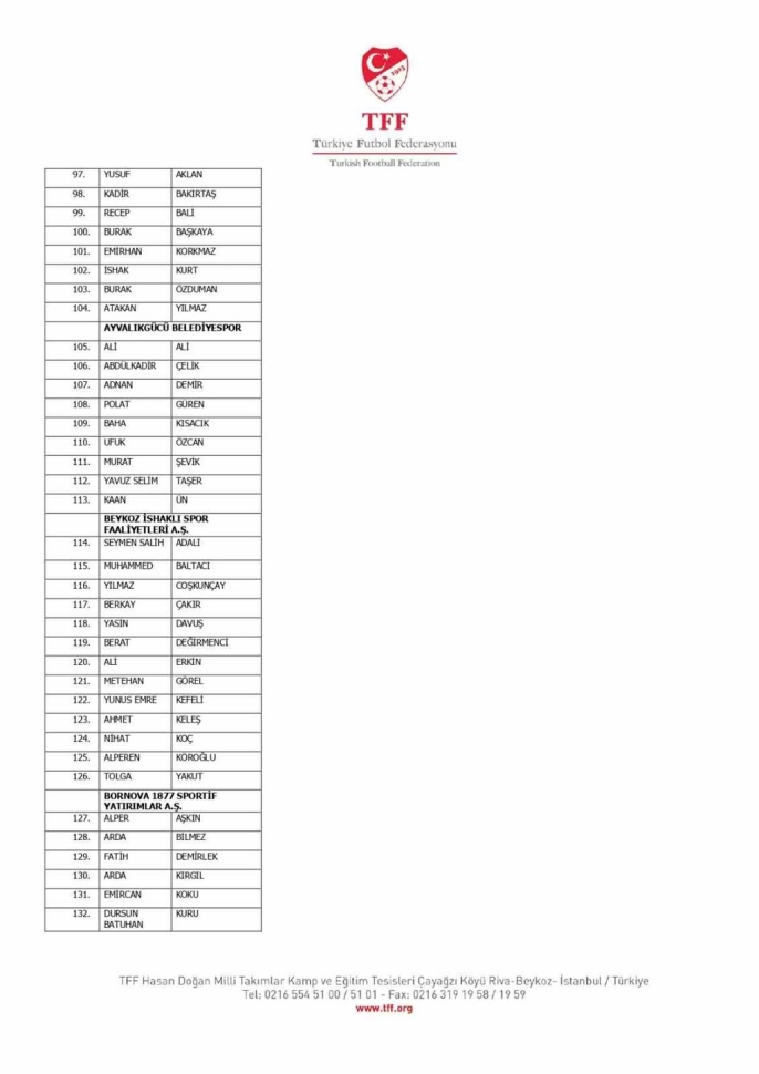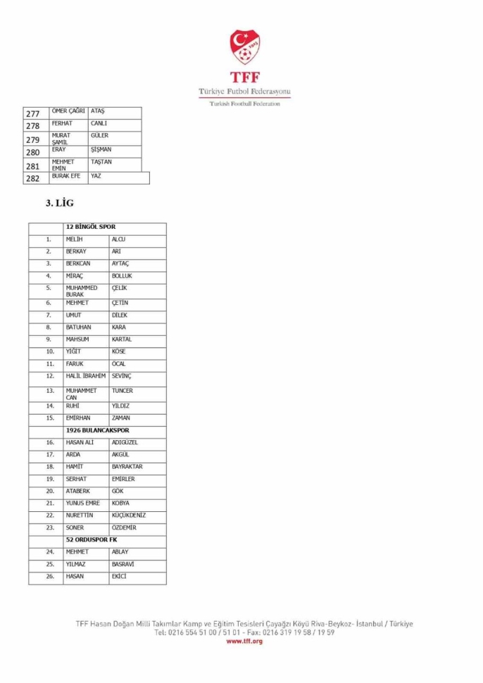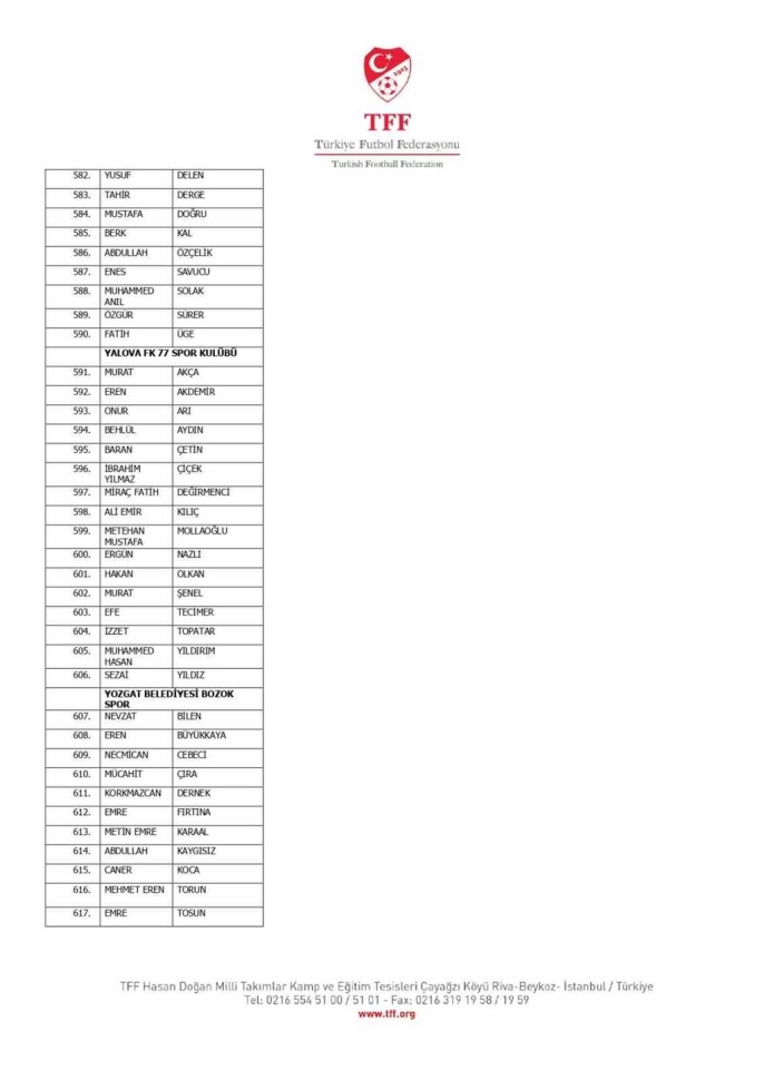 TFF Yönetim Kurulu'nun 10.11.2025 tarihli kararı doğrultusunda, TFF 2. Lig ve TFF 3. Lig'deki müsabaka fikstürleri iki hafta ertelendi. Süper Lig ve TFF 1. Lig'deki maçlar ise planlandığı gibi devam edecek. Öte yandan, yalnızca bir kez bahis hareketinde bulunduğu belirlenen 47 futbolcu hakkındaki disiplin sevk işlemleri, resmi kurumlardan gelecek yanıtlar ve ortaya çıkacak yeni deliller ışığında yeniden değerlendirilecek. Türkiye Futbol Federasyonu, resmi yazışmaların sürdüğü bu soruşturmayı genişleterek devam ettirme kararlılığında. Bahis soruşturması kapsamında PFDK'ya sevk edilen 1024 futbolcunun listesi de kamuoyu ile paylaşılmış durumda.