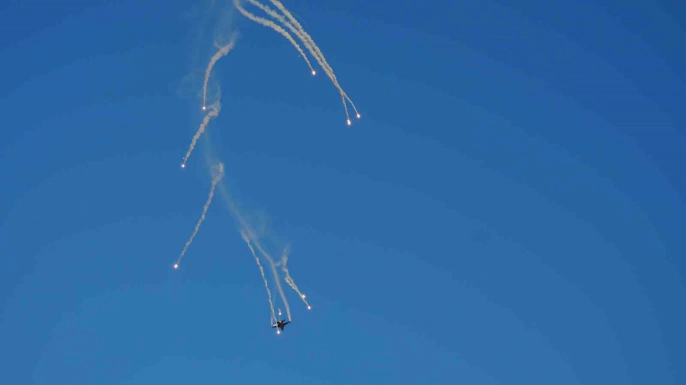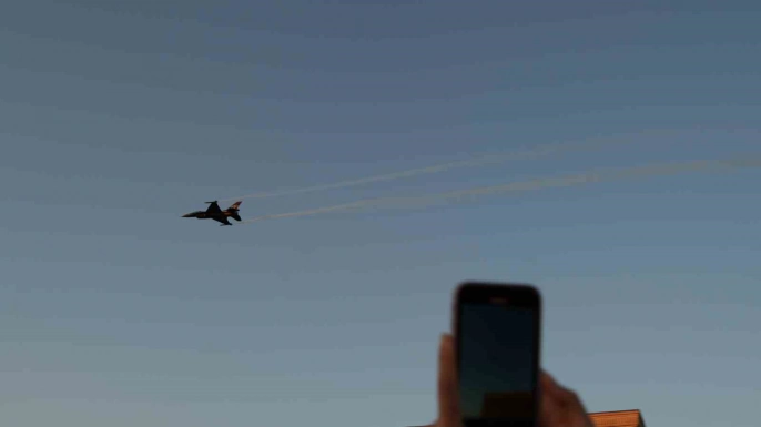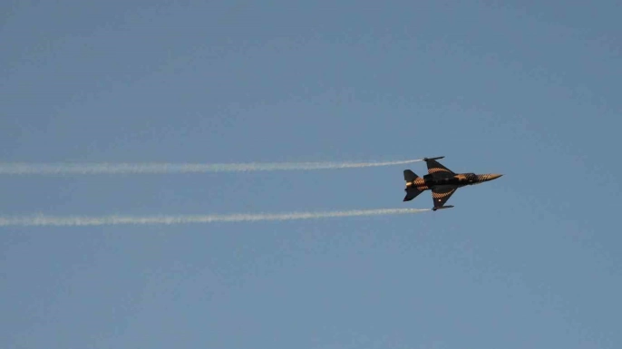 30 Ağustos Zafer Bayramı'nın 103. yıl dönümünde, Anıtkabir'de yoğun bir ziyaretçi kalabalığı arasında Türk Hava Kuvvetleri'ne bağlı SOLOTÜRK ekibi, F-16 savaş uçağıyla muhteşem bir gösteri uçuşu sergiledi.