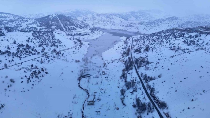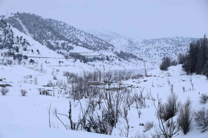 Eski köyün tamamen gün yüzüne çıkmasından kısa bir süre sonra bölgede etkili olan yoğun kar yağışı, ortaya çıkan manzarayı daha da ilginç bir hale getirdi. Bir zamanlar sular altında kalan, sonrasında ise kuraklık nedeniyle tekrar görünen Pusat köyü, şimdi de kar örtüsüyle kaplandı. Bu durum, yaşanan kuraklığın boyutunu ve doğanın döngüsünü gözler önüne sererken, kar altındaki köy ve baraj havzası dron ile görüntülendi.