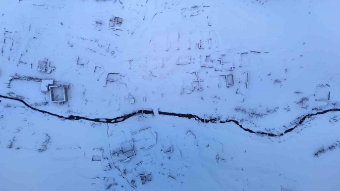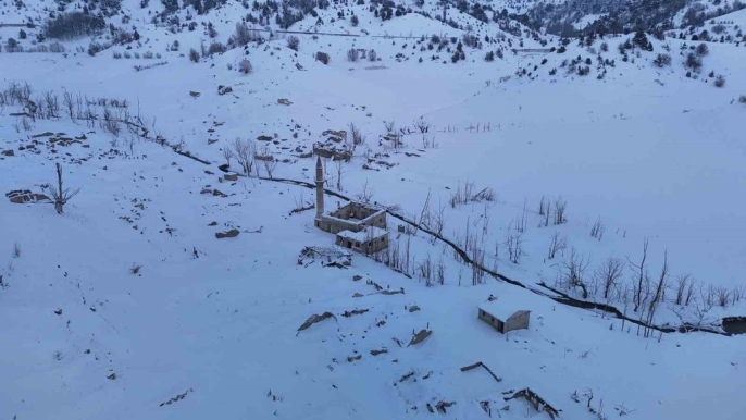 Sular çekildi, köy ortaya çıktı, şimdi de kar altında kaldı!