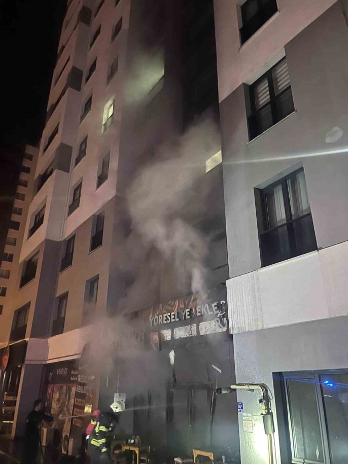 Mevlana Mahallesi Tarif Sokak'ta bulunan 14 katlı bir binanın zemin katındaki restoranda, henüz bilinmeyen bir nedenle yangın başladı. Kısa sürede büyüyen alevler, üst katlardaki dairelerin camlarında hasara yol açtı. İhbar üzerine olay yerine sevk edilen polis ve itfaiye ekipleri, güvenlik önlemleri alarak yangına müdahale etti.