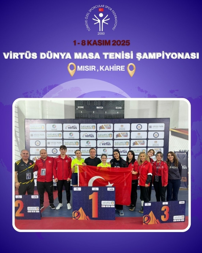 Özel Sporcular Para Masa Tenisi Milli Takımı, Mısır'ın Kahire şehrinde gerçekleşen VIRTUS Dünya Masa Tenisi Şampiyonası'nda büyük bir başarıya imza atarak Türkiye'ye ilk kez dünya şampiyonluğu getirdi.