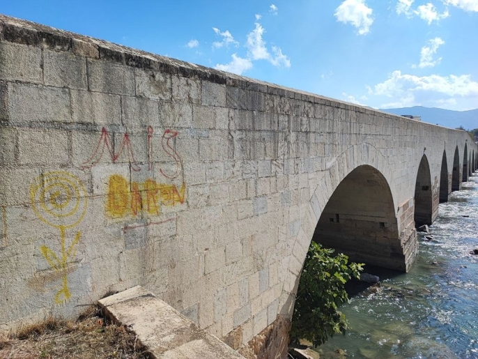 Adana'nın Yüreğir ilçesinde yer alan ve Anadolu'nun bilinen ilk Roma köprüsü olma özelliğini taşıyan Misis Köprüsü, kimliği belirsiz kişilerin sprey boya ile yaptığı yazılama sonucu tahrip edildi.