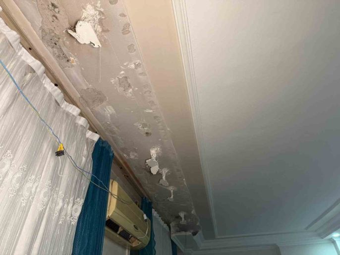 Yaşananları aktaran ev sahibi Neslihan Arslan, daha önceki depremde de evde bir hasar olduğunu belirterek, en ufak bir sarsıntıda tavanın çökeceğini düşündüğünü ifade etti. Arslan, "Bugün olan depremden sonra maalesef ki tavan çöktü. Ben evde değildim, oğlum evdeydi. Panikle aradı beni. Allah’tan çocuklar bu odada değildi. Olsa zaten yaralanabilirlerdi. Oğlum panikle aradı evde böyle bir durum var diye. Hemen geldim, içerisi berbat durumdaydı. Bina ile ilgili çok fazla bilgim yok açıkçası. Ama depremden sonra oluşan çatlaklar oldu, bu tavandaki problem de aynı şekilde. Bugün de tamamen çöktü" şeklinde konuştu.