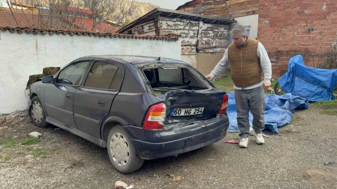 Tokat'ta husumet yüzünden araca zarar verme anları kamerada