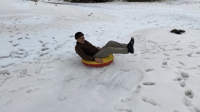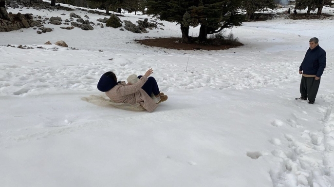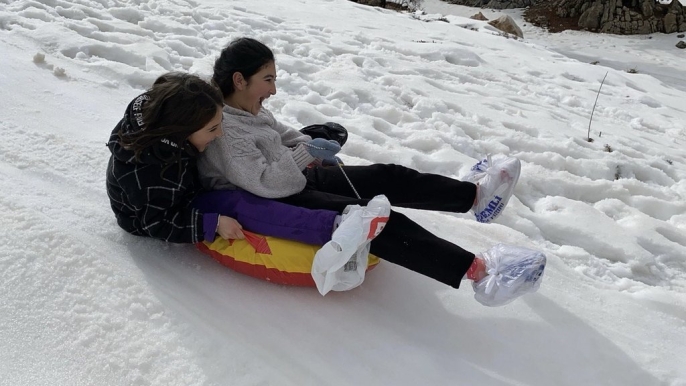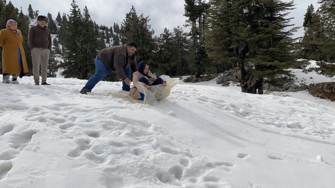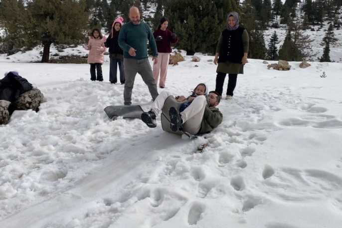 Toroslar'da kar keyfi: Çocuklar ve yetişkinler beyaz örtüde doyasıya eğlendi