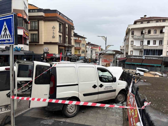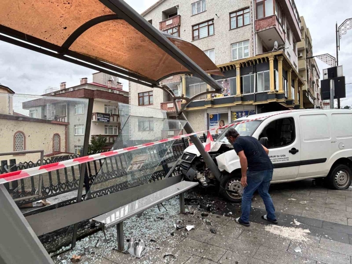 İddiaya göre sürücü, el frenini çekmeyi unutunca araç yokuş aşağı kaymaya başladı. Sürücünün damacana su boşaltmak için araçtan indiği sırada yaşanan olayda, araç otobüs durağına çarparak durdu.