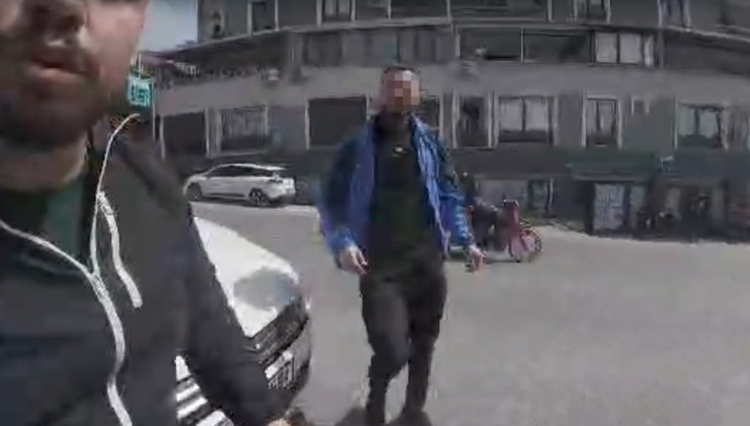 Sürücünün ilk saldırısının ardından araçtan inen diğer kişiler de motosiklet sürücüsüne yöneldi. Yaşanan darp ve hakaret dolu anlar, motosiklet sürücüsünün kask kamerası tarafından tüm çıplaklığıyla kaydedildi. Görüntülerde, saldırganların küfür ve hakaretler savurduğu açıkça görülüyor.
