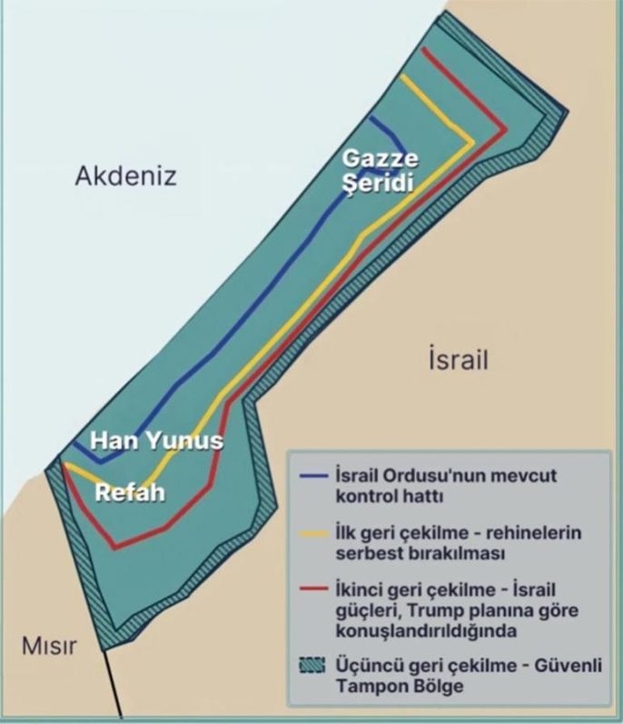 Gazze'de insani kriz derinleşirken, ABD Başkanı Trump, Hamas'a Gazze planını incelemesi için 4 gün süre verdiğini açıkladı. Trump, bu planın savaşın hemen sona ermesi anlamına geldiğini ve sadece Gazze'yi değil, savaşın kendisini bitireceğini belirtti. Arap ve Müslüman ülkelerin bu plana yazılı olarak taahhütte bulunduğunu ifade eden Trump, bu ülkelerin Gazze'yi askerden arındırma konusundaki sözüne güvendiğini ve bunun Hamas ile diğer tüm terör örgütlerinin askeri kapasitelerini derhal devre dışı bırakmak anlamına geldiğini vurguladı. Hamas'ın da plana sıcak baktığı yönündeki duyumların iyi bir gelişme olduğunu ekledi. Trump'ın sunduğu plan, İsrail ordusunun kademeli olarak Gazze'den çekilmesini öngörüyor.