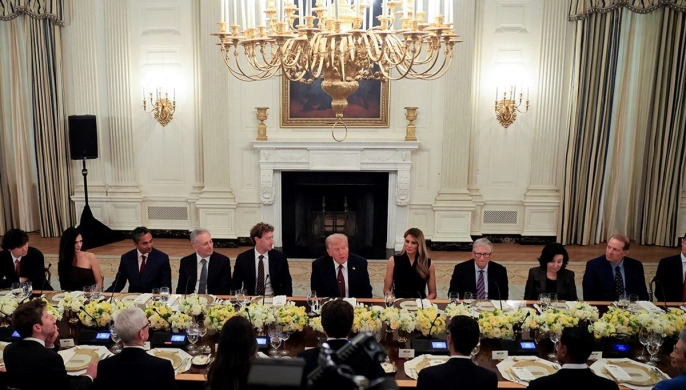 ABD Başkanı Donald Trump, Beyaz Saray'da teknoloji sektörünün önde gelen isimlerini ağırladı. Akşam yemeğine, First Lady Melania Trump da eşlik etti. Toplantı, Trump'ın geçen hafta yenilediği Beyaz Saray Gül Bahçesi'nde gerçekleşti.