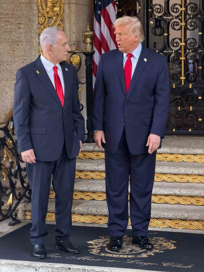 ABD Başkanı Donald Trump ve İsrail Başbakanı Binyamin Netanyahu, Florida'daki Mar-a-Lago malikanesinde bir araya geldi. Görüşme öncesinde açıklamalarda bulunan Trump, buluşmanın çok önemli olduğunu ve gündemde Gazze, İran, rehineler, bölgesel güvenlik ve diplomasi gibi beş ana konunun yer alacağını belirtti. Özellikle Gazze'nin geleceği ve İran'ın askeri kapasitesi üzerine yoğunlaşılacağını ifade etti.
