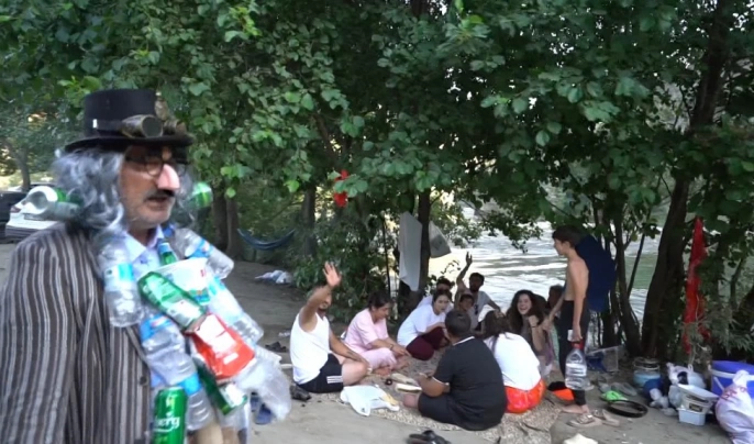Tunceli'de yaşayan tiyatro yönetmeni Yılmazcan Şare, çevre kirliliğine dikkat çekmek için ilginç bir yöntem denedi. Vücuduna bağladığı çöpler ve palyaço kıyafetiyle Munzur ve Pülümür Çayı kıyısındaki piknik alanlarını gezen Şare, vatandaşları doğanın korunması konusunda duyarlı olmaya çağırdı.