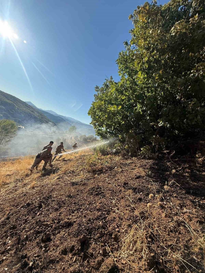 Tunceli'nin Nazımiye ilçesinde meydana gelen bir kırsal alan yangını, itfaiye ve orman ekiplerinin yoğun çalışmaları sonucu kontrol altına alındı. Yangın, Nazımiye ilçesine bağlı Beytaşı köyünde henüz belirlenemeyen bir nedenle başladı.