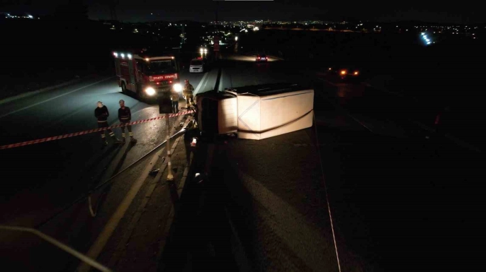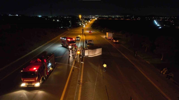 41 PM 207 plakalı kamyonetle pazardan dönen Ş.S., direksiyon hakimiyetini kaybetti ve refüjdeki aydınlatma direğine çarptı. Çarpmanın şiddetiyle araç yan yattı. Sürücü Ş.S. ve eşi E.S. yaralandı.