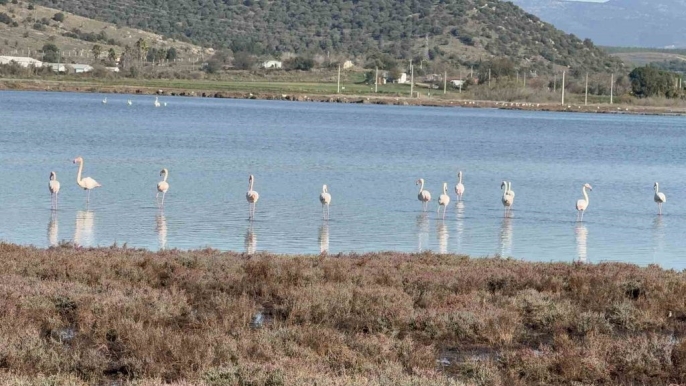 Bodrum ve Milas'ın kesişim noktasında yer alan Tuzla Sulak Alanı, bu kez de binlerce flamingoya ev sahipliği yaparak adeta görsel bir şölene dönüştü. Göçmen kuşların uğrak noktası olan bu eşsiz bölge, ziyaretçilerine unutulmaz anlar yaşatıyor.