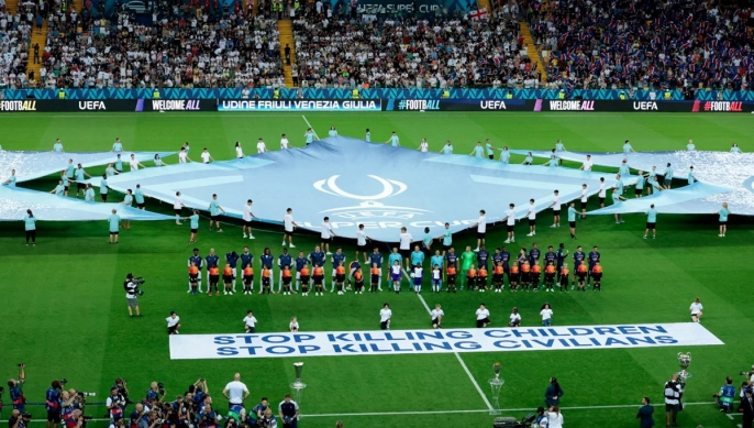 UEFA'dan açıklama: 'Çocukları öldürmeyi durdur' pankartı siyasi değil, insani mesaj