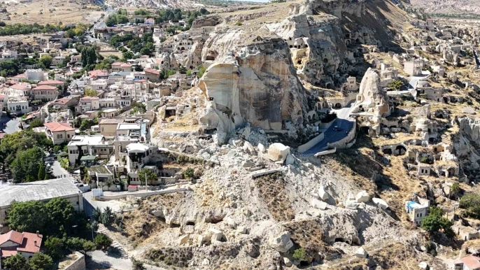 UNESCO Dünya Doğal ve Kültürel Miras Listesi'nde yer alan Kapadokya'da, Ürgüp ilçesindeki Kadıkalesi'nin ön kısmında büyük bir kaya kütlesi koptu ve düştü. Bu olay, dün yaşanan peribacasının yıkılmasının ardından yaşandı.