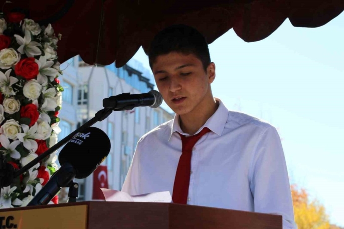 Tören, Vali Aktaş’ın protokol üyeleriyle birlikte kutlama tebriklerini kabul etmesiyle başladı. Ardından İstiklal Marşı ve saygı duruşu ile devam eden etkinliklerde şiirler okundu.