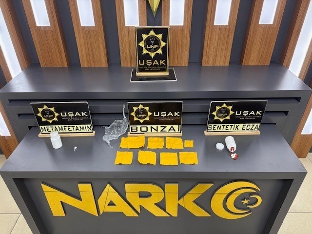 Uşak İl Emniyet Müdürlüğü Narkotik Suçlarla Mücadele Şube Müdürlüğü ekipleri, "Uyuşturucu Madde Ticareti" ile mücadele çerçevesinde il merkezinde bir adrese baskın yaptı. Yapılan aramalarda toplamda 2 bin 549 kullanımlık A4 sentetik bonzai, 36 adet sentetik ecza ve bir miktar metamfetamin maddesi bulundu.