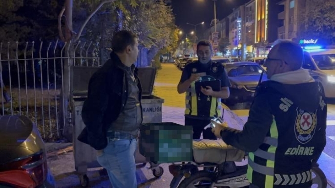 Edirnenin 1. Murat Mahallesi Zübeyde Hanım Caddesinde meydana gelen olayda, motosikletiyle yaya geçidinden geçmeye çalışan E.Z. isimli sürücü, polis uygulama noktasına yaklaştığı sırada kontrolünü kaybederek yolun ortasına düştü. Polis ekiplerinin yardımıyla ayağa kaldırılan sürücüye yapılan alkolmetre muayenesinde 1.94 promil alkollü olduğu belirlendi.