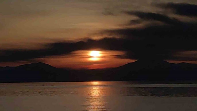 Doğu’nun incisi Van’da, güneşin batışıyla birlikte gökyüzünde adeta bir renk cümbüşü yaşandı. Van Gölü üzerinden süzülerek batan güneş, yerini gümüş bir tepsi gibi doğan aya bıraktı. Akşam saatlerinde Van Kalesi ve Edremit sahil şeridinde bir araya gelen vatandaşlar, gün batımının eşsiz kızıllığına tanıklık etti.