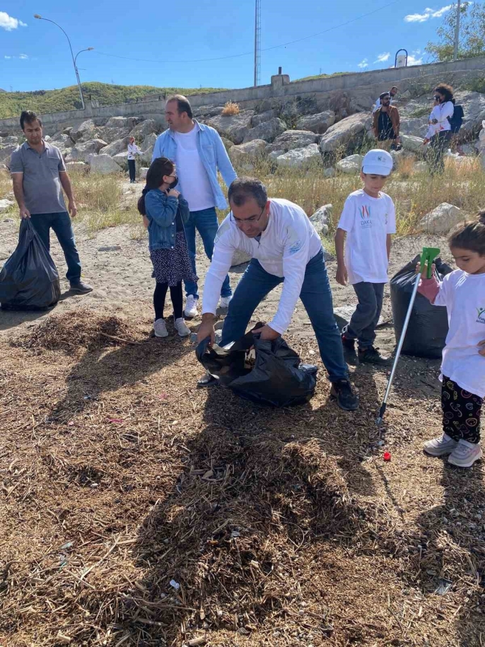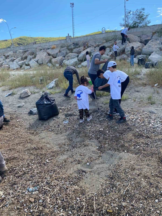 Bitlis'in Tatvan ilçesinde Dünya Kıyı Günü nedeniyle Van Gölü sahilinde temizlik etkinliği düzenlendi.
