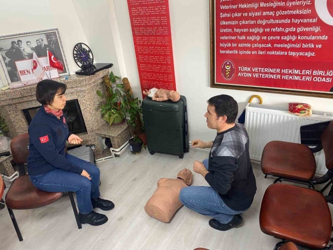 Aydın Veteriner Hekimleri Odası Hizmet Binası'nda gerçekleştirilen bu güncelleme eğitimi, Aydın İl Sağlık Müdürlüğü Sağlık Hizmetleri Başkanlığı Acil Sağlık Birimi'nin deneyimli eğitmenleri tarafından verildi. Eğitim, daha önce oda bünyesinde verilen ilk yardım eğitimlerine katılarak sertifika almaya hak kazanan veteriner hekimlere özel olarak hazırlandı. Eğitim programı kapsamında, acil durumlarda doğru ve hızlı müdahalenin hayati önemi bir kez daha vurgulandı. Katılımcılara, temel ilk yardım uygulamaları hakkında en güncel bilgiler aktarıldı ve pratik bilgiler paylaşıldı. Aydın Veteriner Hekimleri Odası tarafından yapılan açıklamada, eğitime katkı sağlayan eğitmenlere ve meslektaşlarına teşekkür edildi. Oda, veteriner hekimlerin çalışmalarında başarılar diledi.