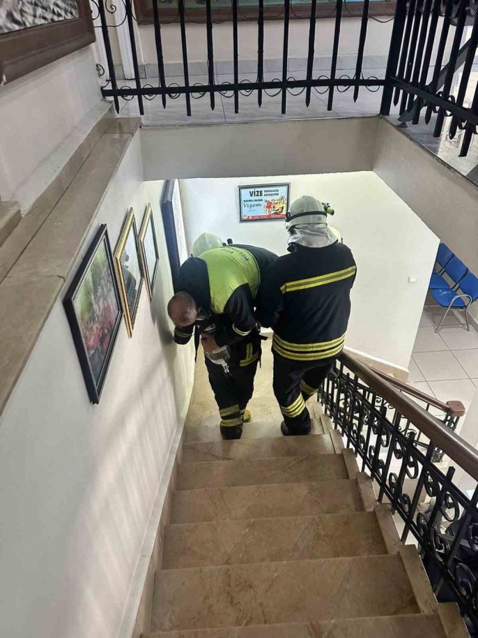 Kırklareli'nin Vize ilçesinde, iş yerlerinde acil durum yönetmeliklerine uygun olarak yangın söndürme ve tahliye tatbikatı gerçekleştirildi.