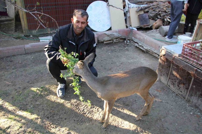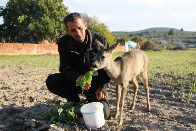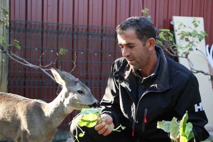 Çanakkale'nin Dümrek köyü muhtarı Abdülkerim Yavuz, merada çoban köpekleri tarafından yakalanan bir karacaya sahip çıkarak onu köyünün maskotu haline getirdi.
