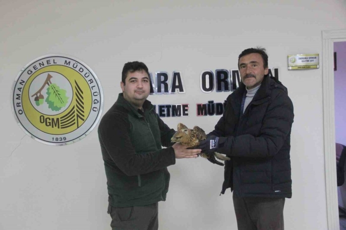 Kızıl şahini koruma altına alan esnaf Akif Mutlu, hayvanı iş yerinin önündeki karların üzerine düşmüş olarak buldu. Uçamayacak durumda olduğunu anlayan Mutlu, kuşu işletmesine getirerek pişmiş tavukla besledi ve ısınmasını sağladı. Mutlu, 112 Acil Çağrı Merkezi aracılığıyla Milli Parklar ve Doğa Koruma Müdürlüğü’ne bilgi verdi. Yönlendirme üzerine şahini Zara Orman İşletme Müdürlüğü’ne teslim etti. Olayın detaylarını anlatan Mutlu, "Dışarıyı izlerken bir anda kara gömüldüğünü gördüm. Aç ve soğuktan etkilenmişti. Yanına gittiğimde uçamayacak durumdaydı. Hemen alıp ekiplere durumu bildirdim ve teslim ettim" ifadelerini kullandı.