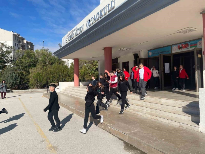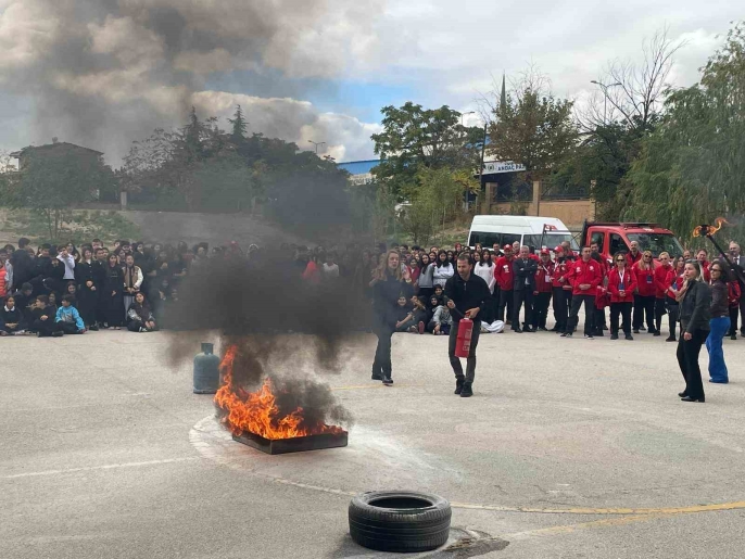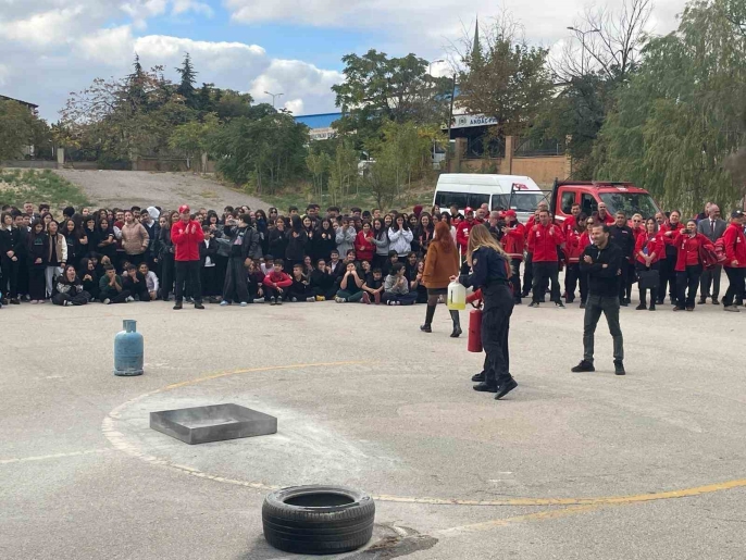 Okul bahçesinde toplanan öğrencilere, Ankara Büyükşehir İtfaiye ekipleri tarafından temel afet bilgileri verildi. Ardından, öğrencilerin uygulamalı olarak öğrendikleri yangın söndürme tatbikatı gerçekleştirildi.
