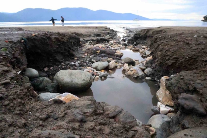 Yılın en kısa gününde Akyaka sahilinde deniz suyu çekildi