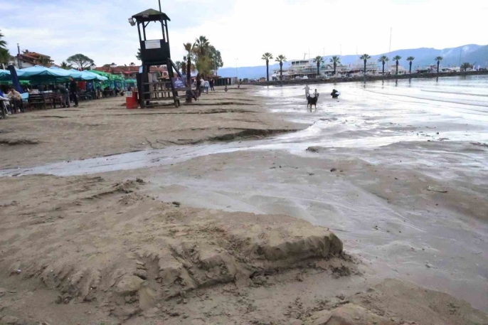 Atmosferik değişim, deniz suyunun iç kesimlere doğru çekilmesine yol açtı. Oluşan adacıkların keyfini çıkarmak isteyen çocuklar, sahilde oyun oynarken, büyükler de yürüyüş yaparak doğanın tadını çıkardılar. Akyaka sahilindeki bu ilginç manzara, yerli ve yabancı turistlerin ilgisini çekti.