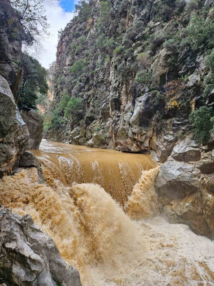 Menteşe’nin Akbük Koyu’na yaklaşık 8 kilometre mesafede yer alan Gökbük Kanyonu’nda, yağışların etkisiyle kanyondan gelen suların gür ve kuvvetli bir şekilde aktığı gözlemlendi. Dere yatakları ve şelale geçişlerinde suyun debisinin artması, etkileyici manzaraların ortaya çıkmasına neden oldu.