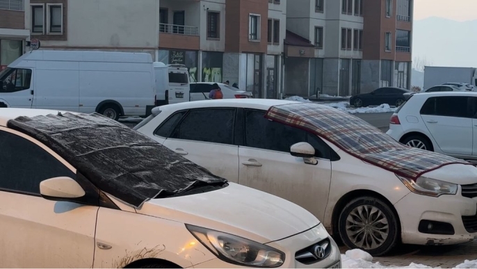 Gece saatlerinde hava sıcaklığının sıfırın altında seyrettiği Yüksekova'da, park halindeki araçların üzeri brandalarla örtülürken, bazı sürücüler ise araçlarını battaniye ve poşetlerle sararak donmayı engellemeye çalışıyor. Araç sahipleri, "Sabaha kadar durduğu zaman çalışmıyor, bu yöntemle önüne geçiyoruz" diyerek aldıkları önlemleri anlattı.