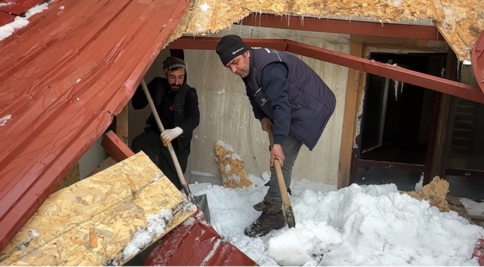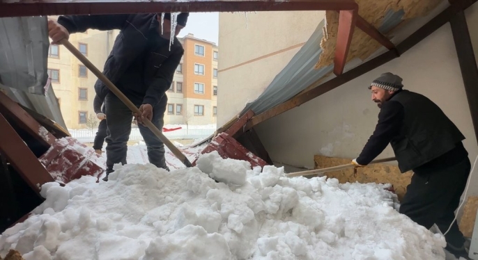 Yüksekova'da kar esareti: Çatıdan düşen kar kütlesi iş yerlerini vurdu