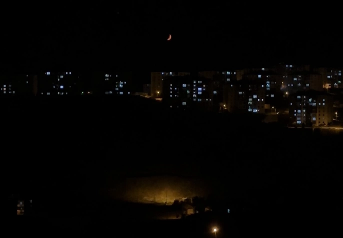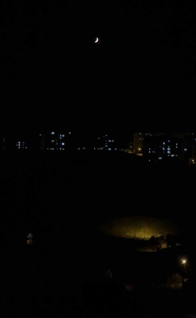 Yüksekova'da kartpostallık manzara: Hilal şeklindeki ay, gökyüzünde muhteşem bir görüntü oluşturdu