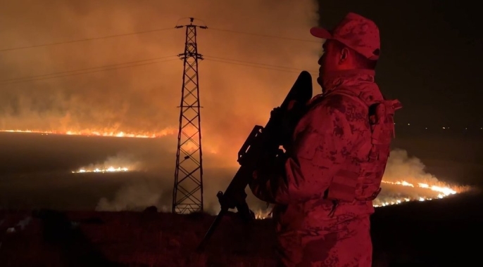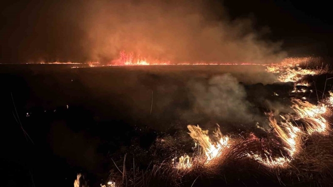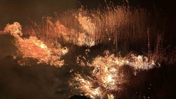 Nehil Sazlığı'nda henüz kesin bir neden bilinmeyen yangın, zorlu arazi koşulları yüzünden itfaiye ekiplerinin işini güçleştiriyor. Araçların giremediği bataklık alanda, itfaiye, jandarma ve Doğa Koruma ve Milli Parklar Müdürlüğü ekipleri, yangına yaya olarak müdahale etmeye çalışıyor. Ekipler, zorlu şartlar altında canla başla yangını kontrol altına almaya çalışıyor.